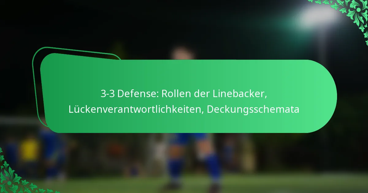 Die 3-3-Defense ist eine Football-Formation, die drei defensive Linemen und drei Linebacker nutzt und darauf ausgelegt ist, Flexibilität gegen sowohl Lauf- als auch Passspielzüge zu bieten. Dieses Schema betont die Kontrolle der Lücken und vielseitige Deckungsoptionen, was es effektiv für verschiedene offensive Strategien macht.