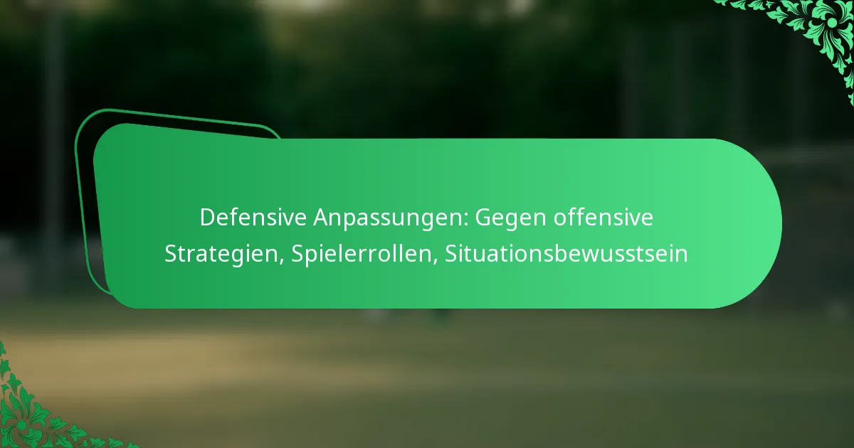 Defensive Anpassungen im Sport sind wesentliche taktische Änderungen, die Teams umsetzen, um den offensiven Strategien ihrer Gegner entgegenzuwirken. Durch das Erkennen und Reagieren auf diese Taktiken können Teams einen Wettbewerbsvorteil aufrechterhalten und den Ausgang des Spiels beeinflussen. Effektive Kommunikation, Spielerrollen und situatives Bewusstsein sind entscheidende Komponenten für die erfolgreiche Umsetzung dieser Anpassungen.